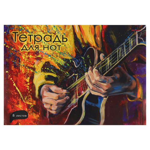 Тетрадь для нот Проф-Пресс А4 8л Взрывной рифф, альбомная, цветная мелованная обложка, на скобе