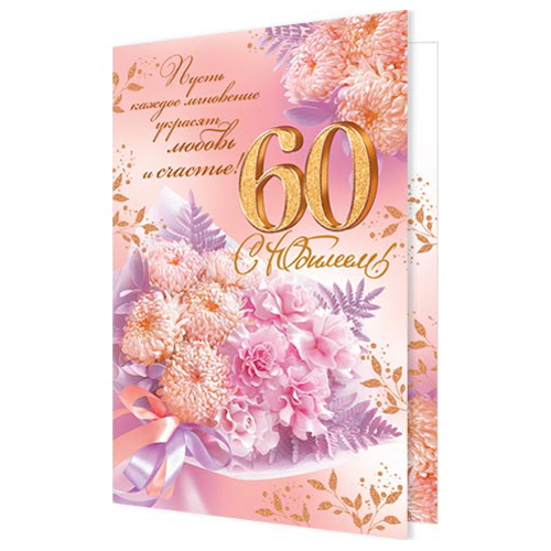 Открытка Мир открыток 2-46 С Юбилеем! 60лет Цветы, 251*194мм, блестки, рельеф, текст