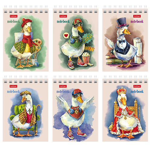 Блокнот МАЛЫЙ ФОРМАТ А7 спираль сверху 40л Hatber GUSSI (ассорти), клетка, обложка - мелованный картон, 6 дизайнов