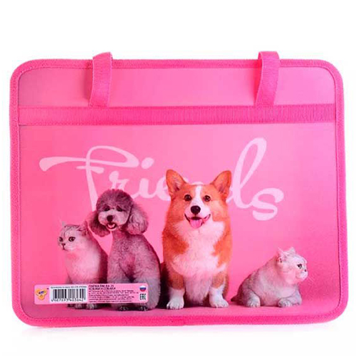 Папка с ручками А4, пластик, 1 отделение, 75мм, Кошки и собаки Пчелка 330*260*75мм