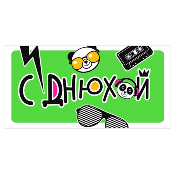 Конверт для денег Мир поздравлений 410 Юмор- С Днюхой, зеленый, медвежонок в очках, кассета, 168*84мм, без отделки, текст
