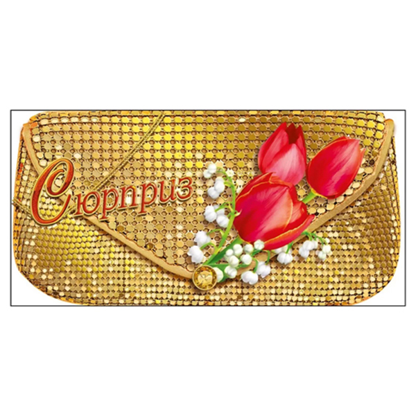 Конверт для денег Мир поздравлений 445 Сюрприз Золотая сумочка с тюльпанами, 168*84мм, фольга золотая