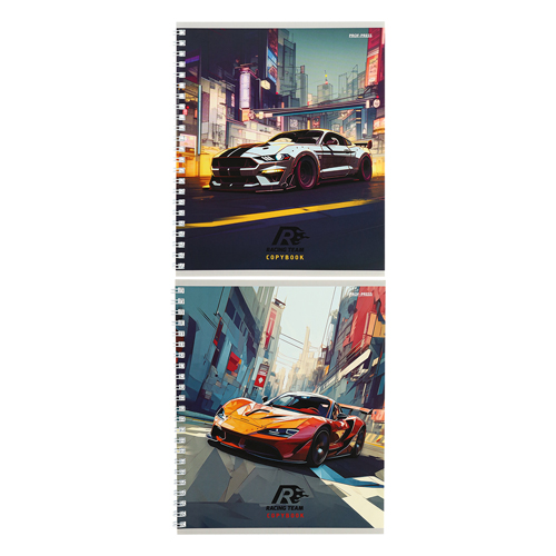 Тетрадь спираль А5 48л клетка Проф-Пресс Нарисованные спортивные авто, офсет, обложка - мелованный картон, 2 дизайна в спайке