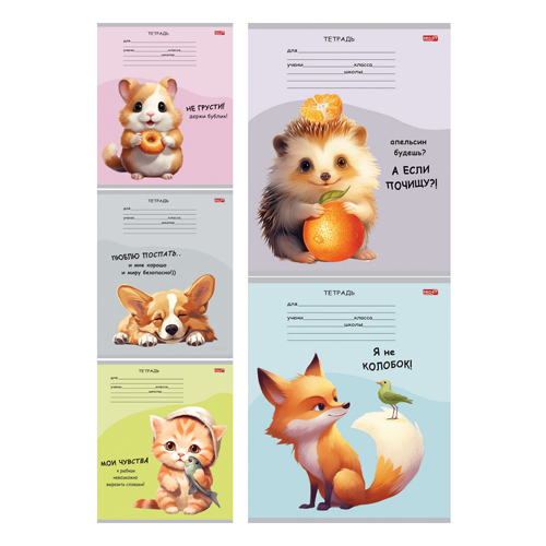 Тетрадь А5 18л клетка Проф-Пресс Эконом Зверята и надписи, офсет, на скобе, обложка - мелованная бумага, 5 дизайнов в спайке