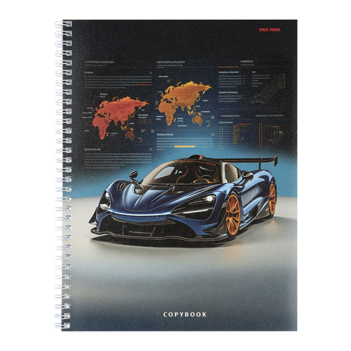 Тетрадь спираль А4 96л клетка Проф-Пресс Автомобильная тематика, офсет, обложка - мелованный картон, тиснение холст, 1 дизайн в коробке