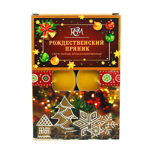 Свеча чайная ароматизированная РСМ 6шт Рождественский пряник, 39*12,5мм, время горения 3-4часа, картонная упаковка