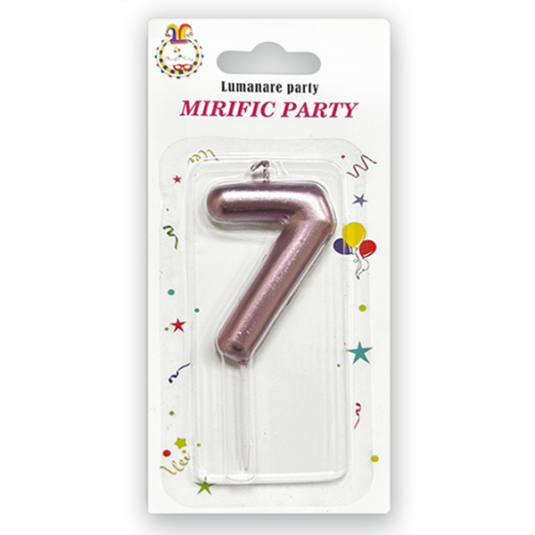 Свеча для торта цифра KWELT 7, розовая, 6*4*1см, на палочке, картонный блистер 14*7*1,5см, европодвес