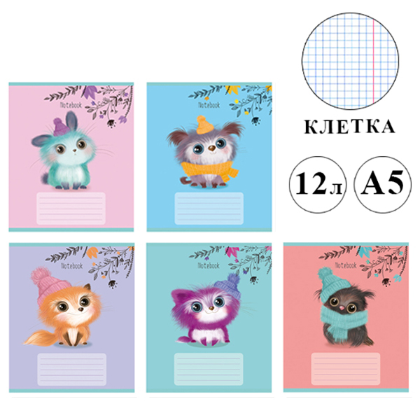 Тетрадь А5 12л клетка ПЗБМ Шмяк! офсет, на скобе, обложка- мелованный картон, конгрев, 1 дизайн в спайке, 5 дизайнов в коробке