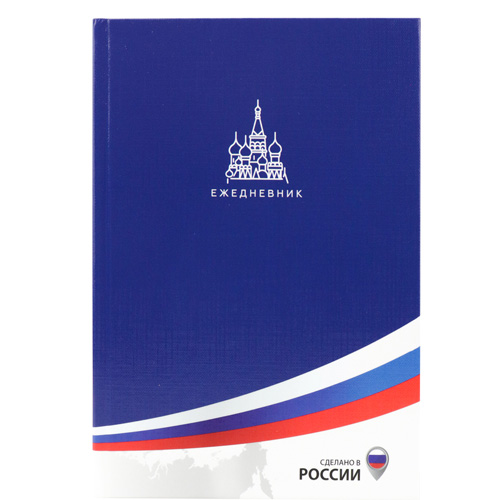Ежедневник недатированный А5 150*205мм 7БЦ Проф-Пресс 136л Патриотизм-1, лен, линия, белый офсет, сшивка