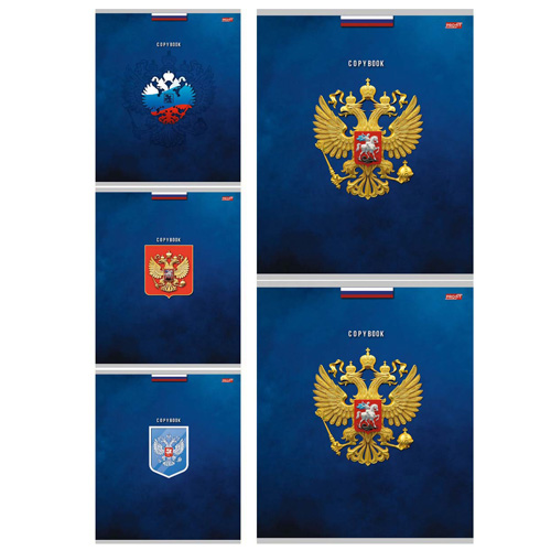 Тетрадь А5 48л клетка Проф-Пресс Гербы, офсет, на скобе, обложка - мелованная бумага, 5 дизайнов в спайке