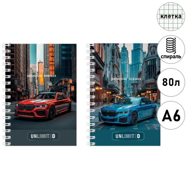 Записная книжка МАЛЫЙ ФОРМАТ А6 спираль 80л Проф-Пресс Шикарные автомобили-2, клетка, обложка - мелованный картон, 2 дизайна