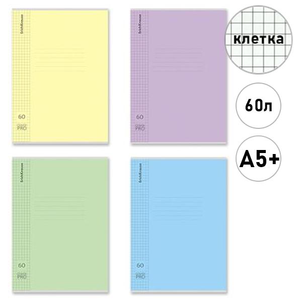 Тетрадь с пластиковой обложкой А5+ 60л клетка Erich Krause CoverPrо Классика, офсет, на скобе, скругленные углы, 4 дизайна в спайке