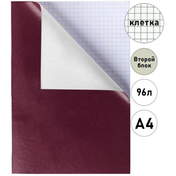 Тетрадь ВТОРОЙ БЛОК А4 96л клетка Hatber бумвинил Бордо, на скобе