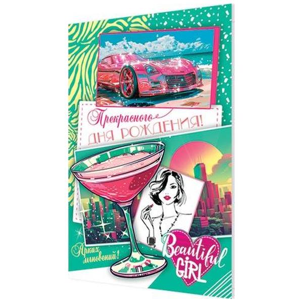 Открытка Мир открыток 2-46 Прекрасного дня рождения! Ярких мгновений, 194*251мм, рельеф, блестки, текст