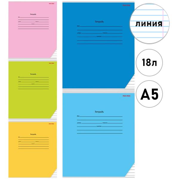 Тетрадь А5 18л линия Проф-Пресс Классика, офсет, на скобе, обложка - мелованная бумага, 5 дизайнов в спайке