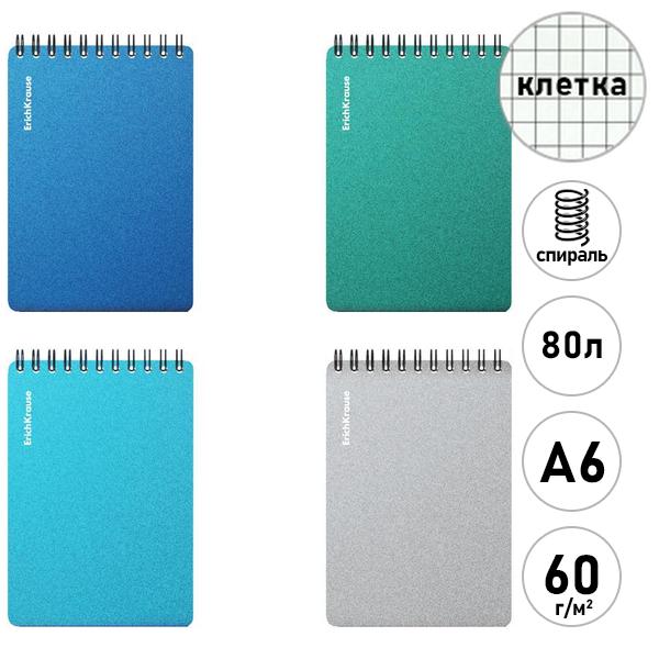 Тетрадь с пластиковой обложкой спираль МАЛЫЙ ФОРМАТ А6 80л клетка Erich Krause Ice Metallic Mix-pack, офсет, скругленные углы, 4 дизайна в спайке