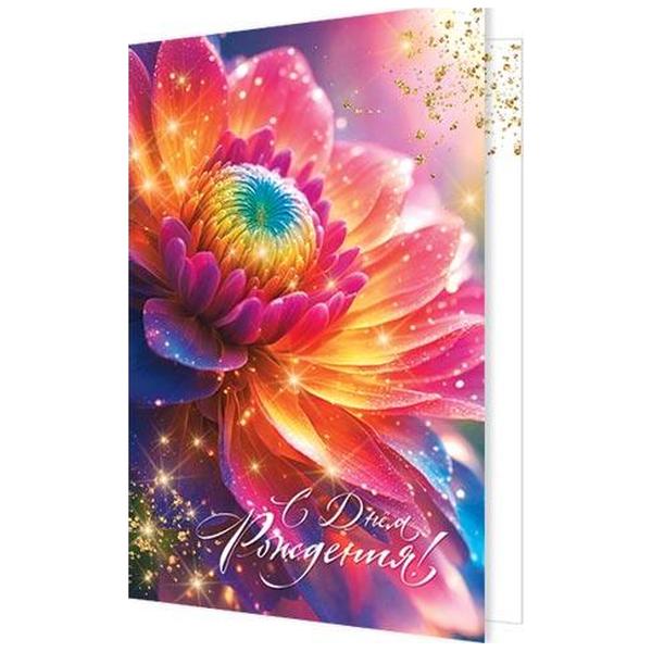 Открытка Мир открыток 2-46 С Днем рождения! Яркий цветок, 194*251мм, рельеф, золотые блестки, текст