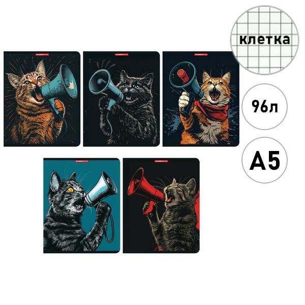 Тетрадь А5 96л клетка Академия Групп КотоКрик, офсет, на скобе, обложка - мелованный картон, ВД-лак, 5 дизайнов в спайке