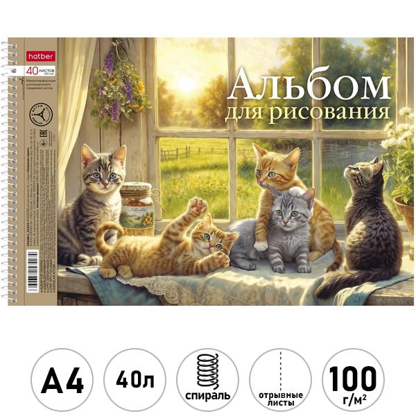 Альбом А4 40л спираль Hatber Выпуск №4 (асорти), обложка - мелованный картон, блок- офсет 100г/м2, перфорация, 4 дизайна в спайке