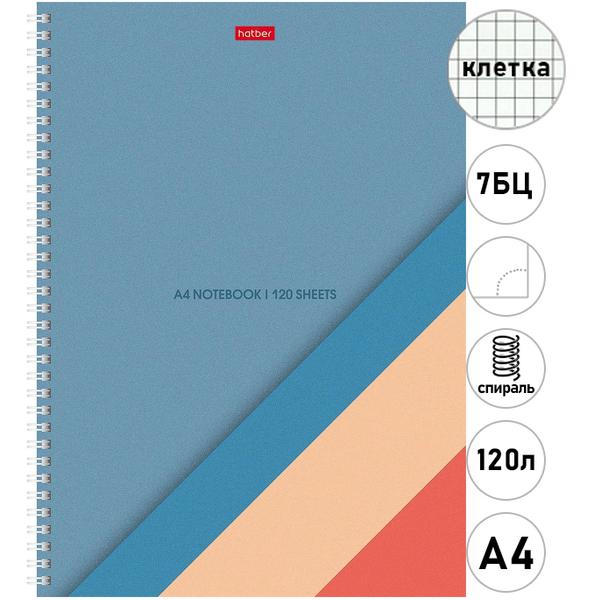 Тетрадь 7БЦ спираль А4 120л клетка Hatber Color Line, офсет, обложка - мелованный картон, soft-touch, многоцветный срез, перфорация, 1 дизайн в коробке