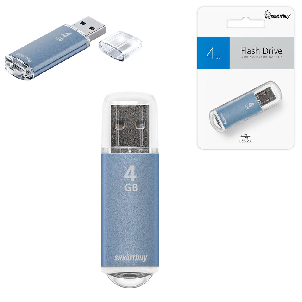 Флеш-диск SmartBuy 4GB V-Cut голубой USB 2.0