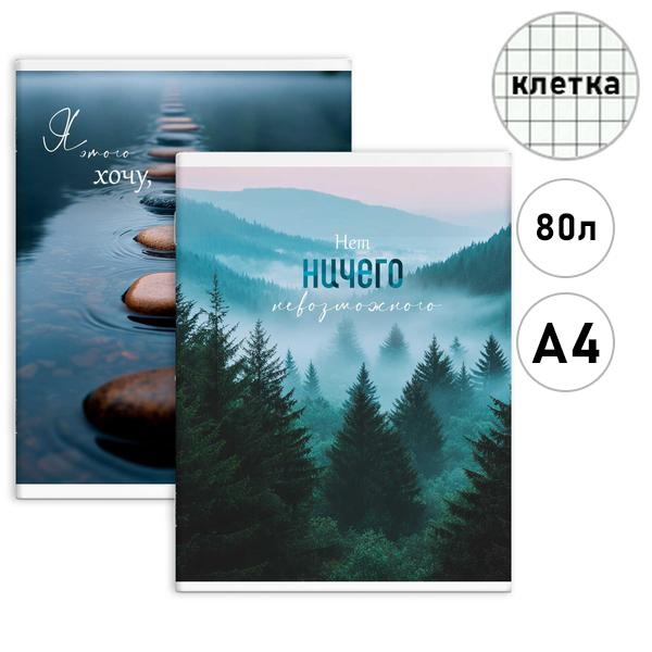 Тетрадь А4 80л клетка Феникс Природа, офсет, на скобе, обложка - мелованный картон, перевертыш, УФ-лак