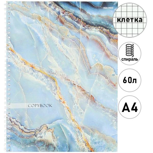 Тетрадь спираль А4 60л клетка Проф-Пресс Голубой мрамор, офсет, обложка - мелованный картон, 1 дизайн в коробке