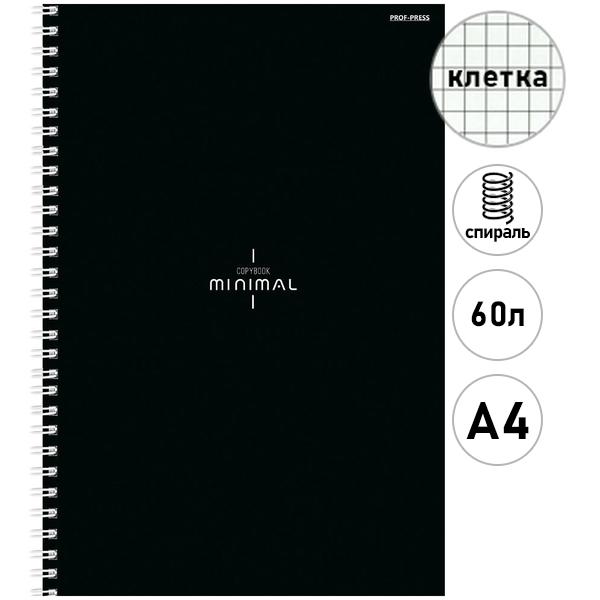 Тетрадь спираль А4 60л клетка Проф-Пресс Минималистичный дизайн-1, офсет, обложка - мелованный картон, 1 дизайн в коробке