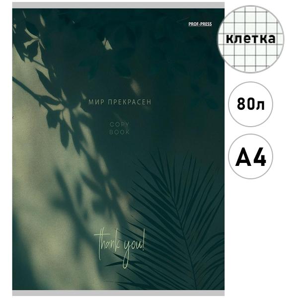 Тетрадь А4 80л клетка Проф-Пресс Тень от листьев, офсет, на скобе, обложка - мелованная бумага