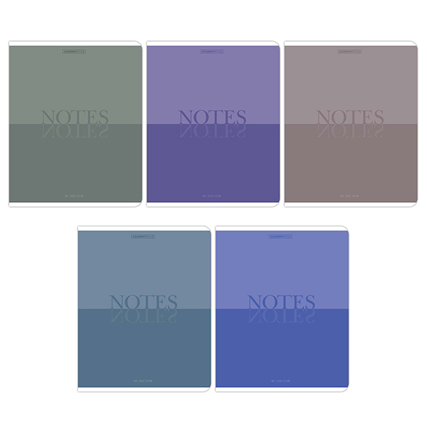 Тетрадь А5 80л клетка Академия Групп Монохром микс, клетка, офсет, на скобе, обложка - мелованный картон, матовая ламинация, 5 дизайнов в спайке