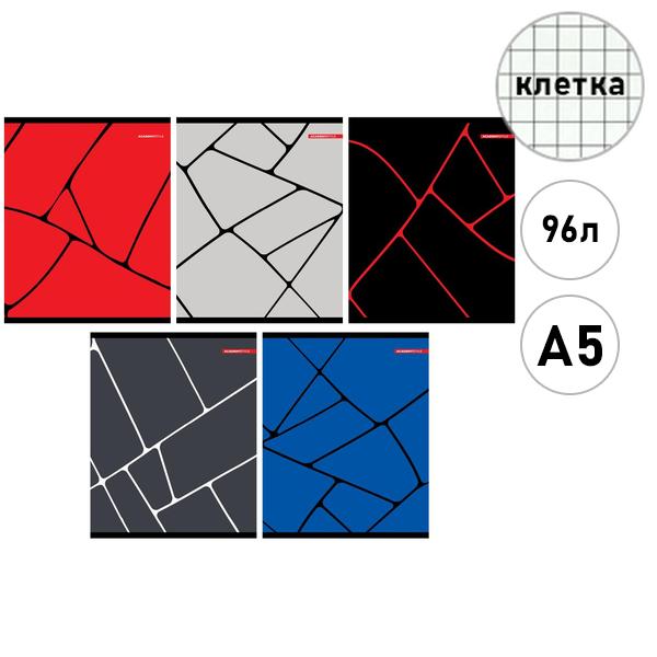 Тетрадь А5 96л клетка Академия Групп Линии, офсет, на скобе, обложка - мелованный картон, ламинация soft-touch, 5 дизайнов в спайке