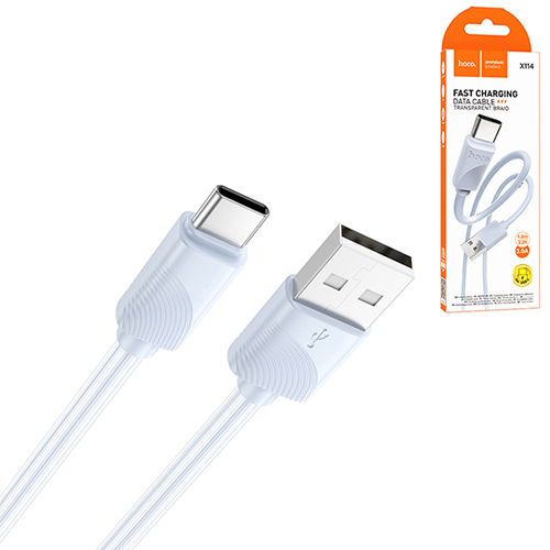 Кабель сетевой USB - Type-C Hoco X114 Energy синий, круглый, 1м, 3,0А, силикон