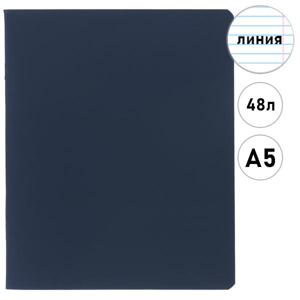 Тетрадь А5 48л линия Hatber SoloMatte Сапфир, офсет, на скобе, обложка - мелованный картон, ламинация soft-touch, запечатанный титульный лист, скругленные углы