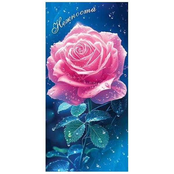 Конверт для денег Мир открыток 2-16 Нежности, розовая роза, 83*168мм, блестки, рельеф