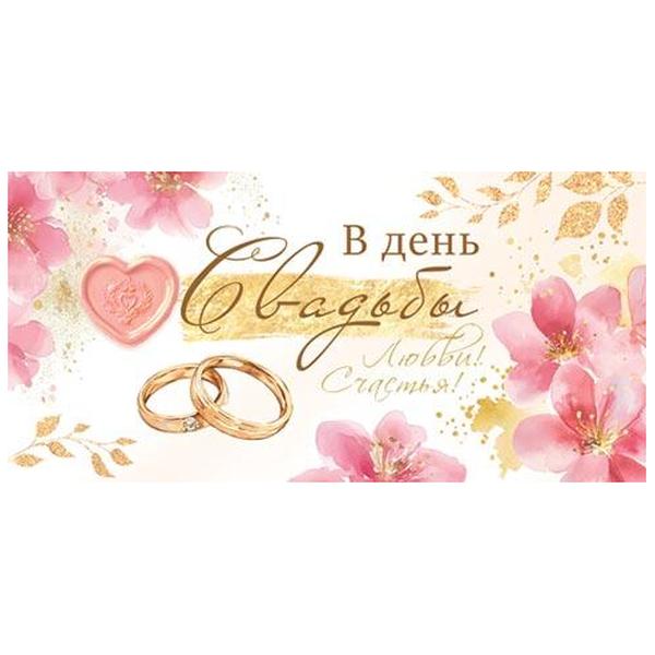 Конверт для денег Мир открыток 2-16 Свадьба- В День Свадьбы! Кольца, цветы, 168*83, рельеф, блестки