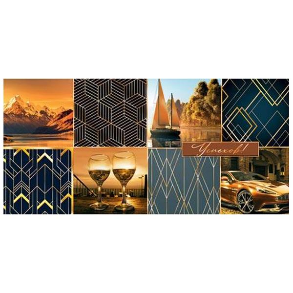 Конверт для денег Мир открыток 2-17 Мужской- Успехов! Горы, бокалы, машина, яхта, 165*85мм, золотая фольга, текст