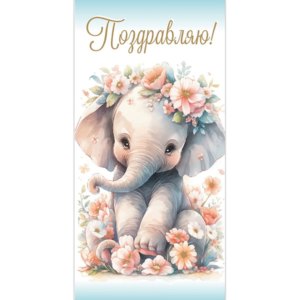 Конверт для денег Миленд Поздравляю! Слоник, 88*164мм, золото