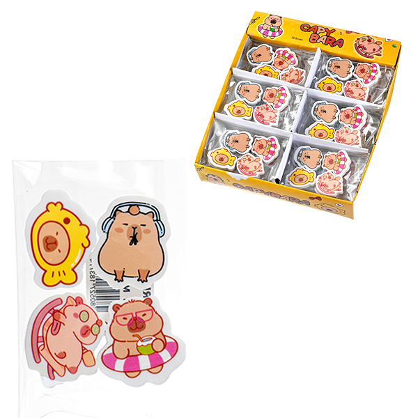 Набор ластиков Mazari Капибары мини, 2*2,7см, термопластичная резина, фигурные, ассорти, 4шт, картонная упаковка