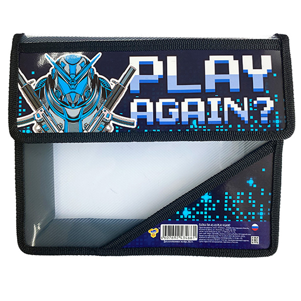 Папка Пчелка МАЛЫЙ ФОРМАТ А5-03 (230*190*50мм) на липучке Play again?, без уголка, пластик