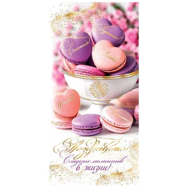 Конверт для денег Мир открыток 2-17 Поздравляю! Сладких моментов в жизни! 85*165мм, золотая фольга, без текста