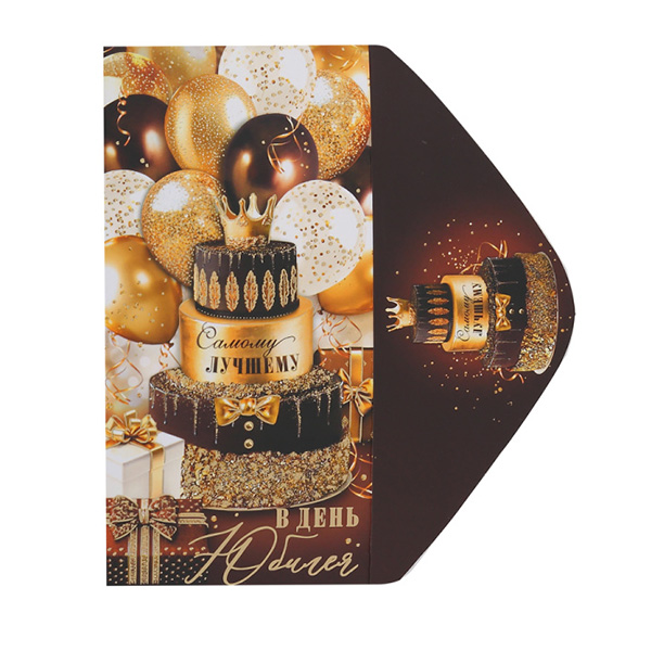 Конверт для денег Мир открыток 2-17 Мужской- В день Юбилея! Самому лучшему, 85*165мм, золотая фольга, без текста