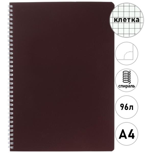 Тетрадь спираль А4 96л клетка Hatber SoloMatte Каштановый мед, офсет, обложка - мелованный картон, soft-touch, перфорация, 1 дизайн в спайке