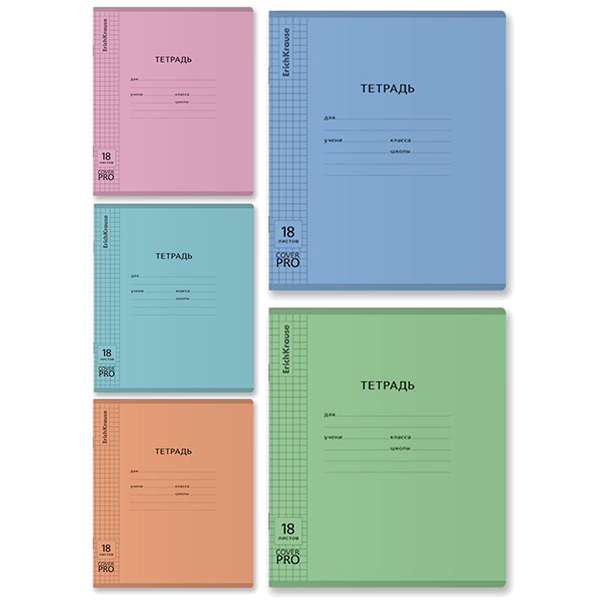 Тетрадь с пластиковой обложкой А5 18л клетка Erich Krause Классика CoverPrо Matt, Dream, офсет, на скобе, скругленные углы, 5 дизайнов в спайке