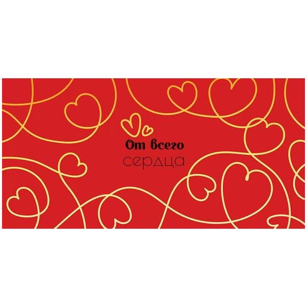Конверт для денег Открытая планета 425 От всего сердца, сердечки, 168*84мм, золотые блестки в лаке, без текста