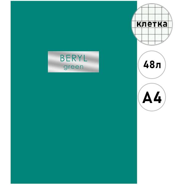 Тетрадь А4 48л клетка Эксмо Beryl Green, офсет, на скобе, обложка - мелованный картон, ламинация soft touch, пантонная печать, тиснение фольгой, скругленные углы, 1 дизайн в коробке