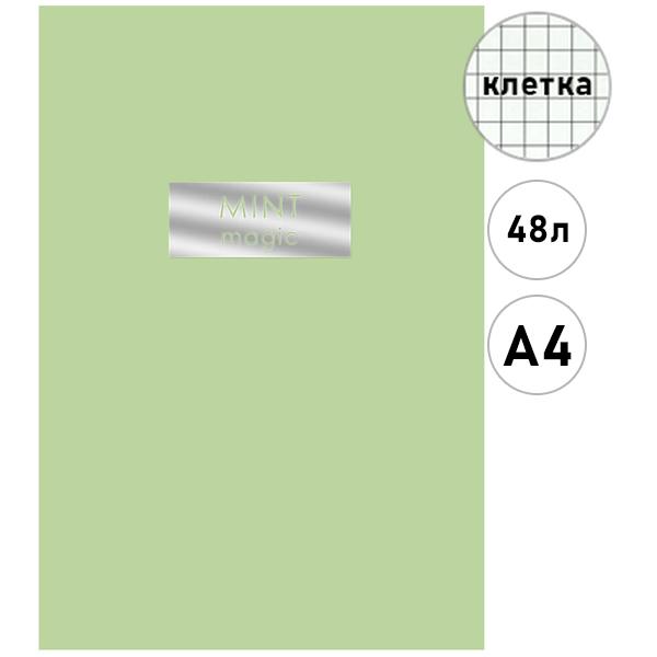 Тетрадь А4 48л клетка Эксмо Mint magic, офсет, на скобе, обложка - мелованный картон, ламинация soft touch, пантонная печать, тиснение фольгой, скругленные углы, 1 дизайн в коробке