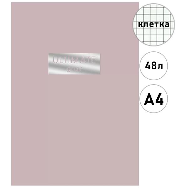 Тетрадь А4 48л клетка Эксмо Ultimate Gray, офсет, на скобе, обложка - мелованный картон, ламинация soft touch, пантонная печать, тиснение фольгой, скругленные углы, 1 дизайн в коробке