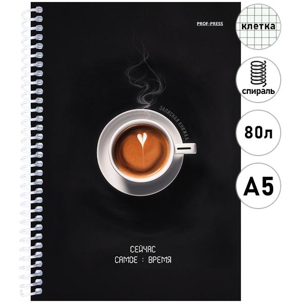 Записная книжка А5 спираль 80л Проф-Пресс Сейчас самое время , клетка, обложка - мелованный картон, 140*205мм