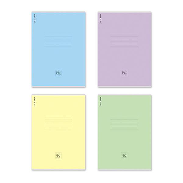 Тетрадь B5 (175x250 мм) 60л клетка Erich Krause Классика, ассорти, офсет, обложка - мелованный картон, скругленные углы, 4 дизайна в спайке