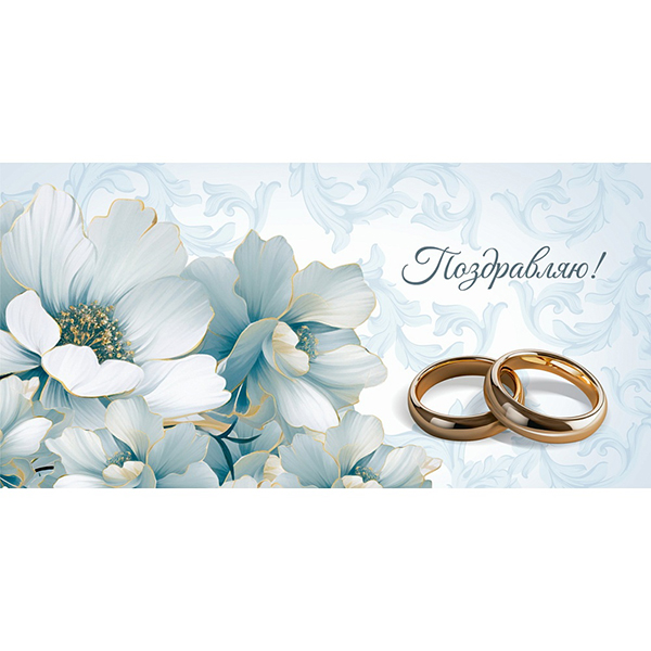 Конверт для денег Миленд Свадьба- Поздравляю, кольца 164*85мм, золото/серебро